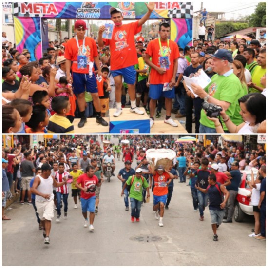 | Jorge Vera Hernández felicitó y premió a cortadores de naranja, ganadores en la carrera del Colotero.. | ||||||