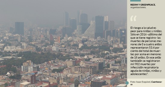 | La Red por los Derechos de la Infancia en México (Redim) y Greenpeace denunciaron que el Gobierno federal y las administraciones estatales lejos de atender la problemática reportada sobre la mala calidad del aire que se vive desde el fin de semana en la Zona Metropolitana del Valle de México, persisten en la simulación. | ||||||