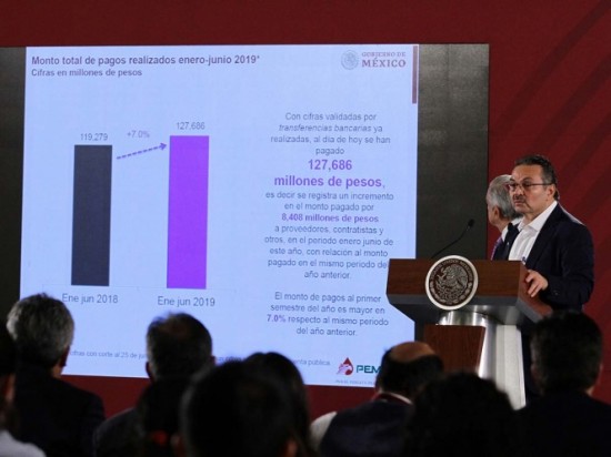 De igual forma, comentó que de enero de 2018 a igual mes de 2019 la producción se redujo en alrededor de 300 mil barriles diarios, al pasar de un millón 928 mil a un millón 626 mil barriles diarios, por lo que la actual administración ha realizado diversas acciones para evitar que siguiera cayendo.