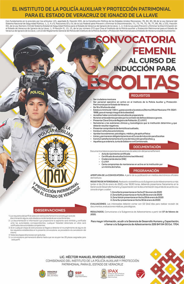 Convocatoria Femenil al Curso de Inducción para Escoltas IPAX. | ||||||