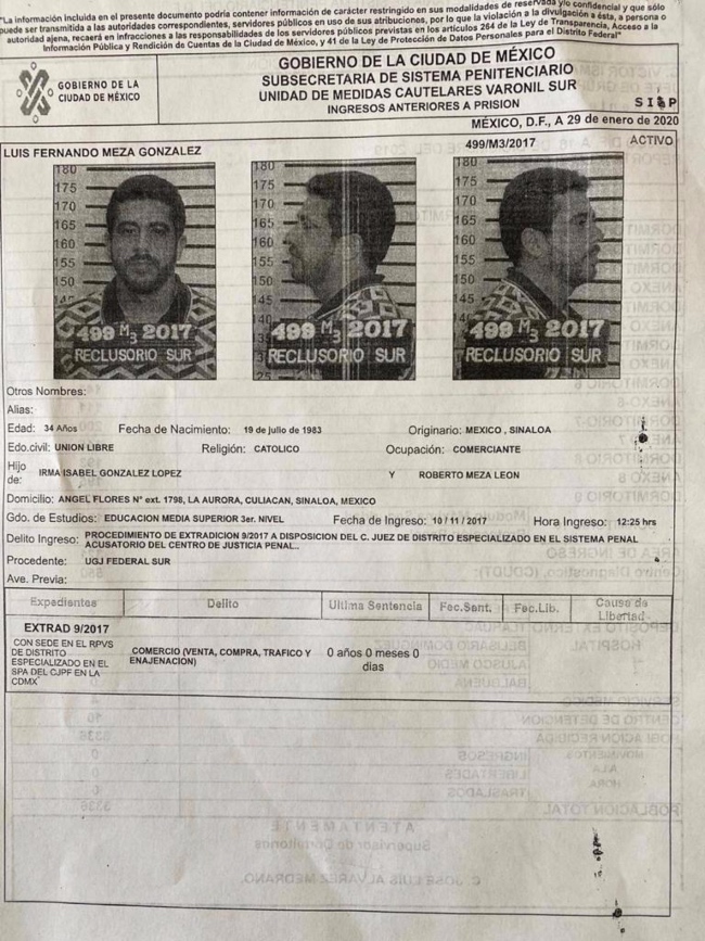 Se trata de Víctor Manuel Félix Beltrán, alias “El Vic”, quien es identificado como uno de los operadores financieros de “El Chapo” Guzmán, y Luis Fernando Meza González, originarios de Culiacán, Sinaloa. Así como un tercer hombre identificado como Yael Osuna Navarro, originario de Nayarit, acusado por asociación delictuosa. ![]() Félix Beltrán fue mano derecha de su padre, Victor Manuel Félix, alias “El Señor,” operador financiero del Cartel de Sinaloa y consuegro de joaquín “El Chapo” Guzmán Loera. Su captura Víctor Manuel Félix Beltrán fue capturado el 26 de octubre de 2017 en la zona de Santa Fe, al poniente de la Ciudad de México y fue condenado a 14 años de prisión. Fue acusado de trabajar para el cártel de Sinaloa y de ser el sucesor de su padre, Víctor Manuel Félix Félix, quien fue detenido en marzo de 2011. ¿Quién es? Víctor Manuel Félix Beltrán, de 30 años de edad, operaba traficando para el Cártel de Sinaloa; en 2012 el Departamento del Tesoro de Estados Unidos lo catalogó como uno de los principales narcotraficantes de este grupo delincuencial. ![]() Bajo una identidad falsa, Félix Beltrán operaba como Francisco Esparza Rangel para de esta forma realizar negocios y adquirir propiedades para el cártel. Autoridades coordinan búsqueda ![]() La Secretaría de Seguridad Ciudadana confirmó esta tarde que se mantiene en comunicación y coordinación con las autoridades del Gobierno de la Ciudad de México para dar con la localización de los tres reos fugados del Reclusorio Sur.