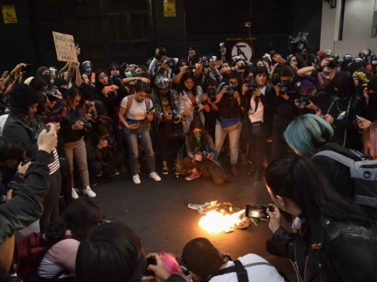 El cariz de la movilización es la molestia por el manejo que realizaron algunos medios del feminicidio -presuntamente realizado por su pareja sentimental- de Ingrid; las integrantes, mientras avanzaban en la marcha externaban su hartazgo ante la revictimización de la mujer. Al grito de "cobardes" con el uso de aerosoles, las manifestantes exigían que los periodistas varones que cubrían la movilización se retiraran, "fuera hombres", era la demanda generalizada. Afuera de un medio de comunicación, algunos vehículos antiguos propiedad de la empresa fueron pintados y uno quemado. La protesta arrancó poco después de las 16:00 horas; las participantes lanzaban gritos contra las mujeres polícias; “pinches asesinas, traicioneras, fuera policías”, eran parte de los mensajes que lanzaban. Una comisión de cinco manifestantes accedió las 18:30 horas al edificio, llevaban fotografías de la joven, y un ejemplar donde aparece la información, con las imágenes que generaron la protesta. Mientras los cielos se abrieron y dejaron caer una intensa lluvia que no logró dispersarlas. |