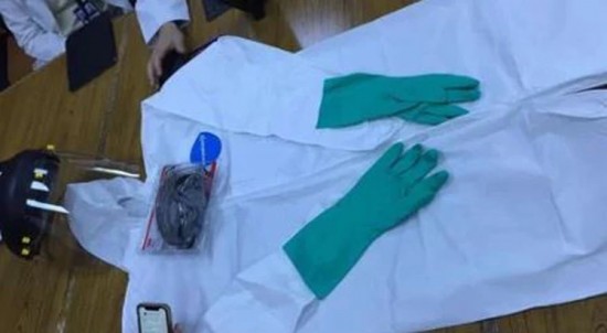 Las indignantes fotos de la improvisación contra el coronavirus: equipan a doctores con guantes de limpieza y caretas para albañil. | ||||||