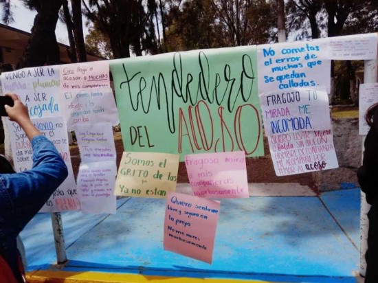 En las preparatorias, las jóvenes colocaron tendederos del acoso en donde narraron agresiones a su persona por parte del personal docente, directivo y administración de las instituciones | ||||||