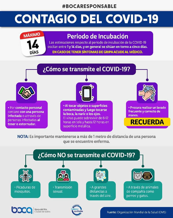 “Después de la declaración de pandemia por parte de la OMS y ante la presencia del coronavirus en México estamos lanzando una campaña que se llama Boca Responsable para difundir las medidas de prevención que hay que tomar hacia el coronavirus”, expresó el alcalde Morelli. Indicó que se llevan a cabo medidas internas y externas. Las internas van dirigidas hacia el propio personal del Ayuntamiento y son: Disposición de gel antibacterial en todas las oficinas. Detección de personas con síntomas de enfermedad respiratoria en cada área del Ayuntamiento y canalización al médico del DIF municipal o recomendación de asistir al médico de su preferencia. Uso de guantes para quienes tengan contacto directo con el público, en áreas como cajas y atención ciudadana. Difusión de medidas de prevención entre el personal. Definió que hacia el exterior se está haciendo la distribución de material impreso para todas oficinas del Ayuntamiento y todos los comercios de la ciudad, incluyendo: hoteles, restaurantes, centros comerciales y centros educativos. Detalló que dicho material trata sobre los síntomas más comunes del COVID-19, sobre la manera de transmisión y no transmisión del mismo, así como medidas de prevención de contagio, con información tomada de fuentes oficiales como la Organización Mundial de la Salud y la Secretaría de Salud Pública. Morelli detalló las recomendaciones para la prevención, mismas que son: 1. Lavarse las manos de forma correcta. 2. NO tocarse los ojos, nariz, ni llevar las manos a la boca sin desinfectarlas previamente. 3. Estornudar y toser correctamente, cubrir la boca con un pañuelo desechable o con el ángulo interno del brazo ¡Nunca con la mano!. 4. NO saludar de mano ni de beso. 5. De presentar síntomas de fiebre, tos y dificultad para respirar, buscar atención médica. 6. Usar cubrebocas al primer síntoma de tos, gripa o enfermedad respiratoria, incluso antes de acudir al médico. (Revisar el manual de uso de cubrebocas). 7. Cargar antibacterial y pañuelos desechables siempre. 8. Mantener una buena alimentación e hidratación. Un cuerpo sano con un sistema inmunológico fuerte, es resistente al virus. 9. Guardar 1 metro de distancia con personas que pudieran tener enfermedad respiratoria. Dichas medidas, tanto las internas como las externas, son tomadas al 13 de marzo derivadas de la situación actual de COVID-19, y son sujetas a modificarse conforme evolucione la presencia del virus en el país, principalmente en el Estado de Veracruz. ![]() ![]() ![]() |