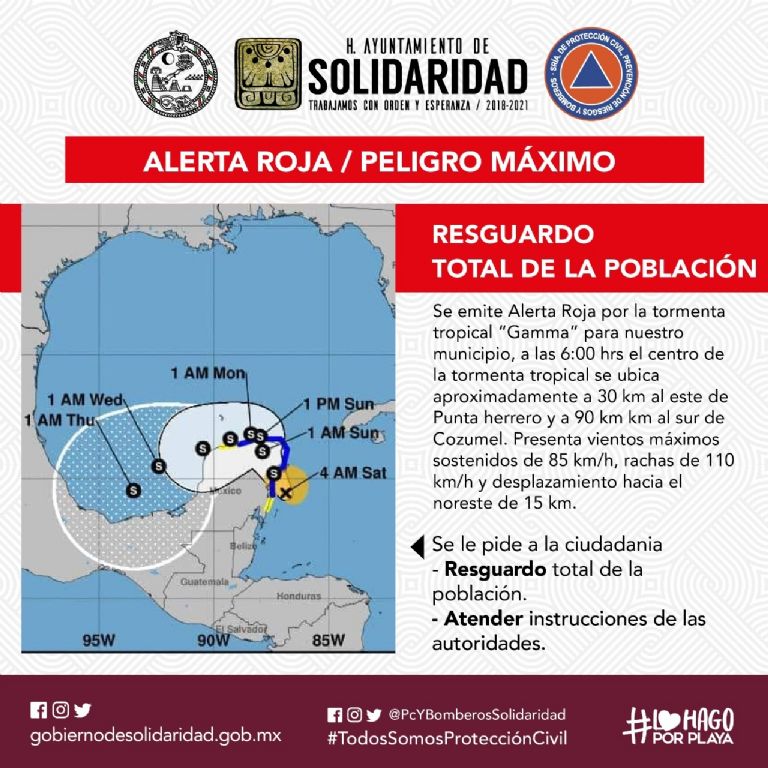 | Quintana Roo en ALERTA ROJA por paso de Tormenta Tropical “Gamma”. | ||||