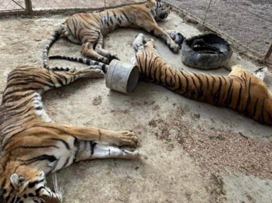 En una breve tarjeta informativa, explica que cuando acudió a realizar el traslado de los ejemplares (sin especificar cuantos días después del aseguramiento), a una Unidad de Manejo para la Conservación de la Vida Silvestre (UMA), en compañía de la Fiscalía del Estado, Ministerio Público, Policía Ministerial, Guardia Nacional y Ejército Mexicano, ya no estaban en el lugar. “Actualmente esta Procuraduría se encuentra realizando una investigación, toda vez que al arribar al domicilio donde se encontraban asegurados los ejemplares, los sellos se encontraban violados y la jaula abierta, vacía, limpia, sin restos de excretas, orina, alimentos o sangre”, destacó. La Profepa hizo una “atenta invitación a evitar la difusión de información no confirmada, a fin de aumentar las probabilidades de encontrar a los ejemplares con vida”, aun cuando existen fotos en redes sociales de los cadáveres y testimonios de los habitantes de la cabecera municipal de Quechultenango, que indican que los grandes felinos fueron abandonados a su suerte sin agua ni alimento. De acuerdo con testimonios recabados por medios locales, después del operativo de seguridad realizado el 15 de febrero, “cerraron todo, le pusieron sellos de asegurado y nunca vinieron a recoger nada, nadie alimentó a los animales y al final se murieron de hambre”. Además, afirmaron que aparentemente la Fiscalía de Guerrero se llevó en una camioneta los restos de los tres tigres de Bengala, después de que perdieron la vida dentro de la jaula. |