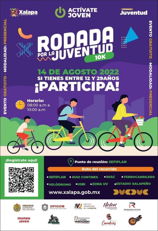 El Ayuntamiento de Xalapa invita a participar en la “Rodada por la Juventud”, a realizarse el próximo domingo 14 de agosto a las 08:00 horas. Se estima que participen 200 personas. La directora de Juventud, Gelsey Yareni Varela Castillo, detalló que se trata de una actividad que tiene el objetivo de incentivar el deporte, la sana convivencia, el uso de la bicicleta y el cuidado del medio ambiente entre la población. Explicó que se realizará un recorrido de 10 kilómetros desde las instalaciones de la Secretaría de Finanzas y Planeación (Sefiplan) hasta el Estadio Xalapeño “Heriberto Jara”, en una ruta resguardada por elementos de la Dirección General de Tránsito y Seguridad Vial de Veracruz, así como por ambulancias y personal de Protección Civil. Informó que las inscripciones permanecerán abiertas hasta el 10 de agosto en el enlace https://docs.google.com/.../1FAIpQLSdnhcNBJKP8H9.../viewform, donde los primeros 100 participantes de entre 12 y 29 años recibirán un kit de participación. Lo deberán recoger con una identificación el viernes 12 de agosto en las instalaciones de la Dirección, ubicadas en la calle Facultad de Arquitectura s/n, colonia Represa del Carmen, detrás de la IMAC. De acuerdo con la funcionaria, a pesar de la restricción de edad para la entrega de kits, el evento se encuentra abierto a todo público, como un evento familiar organizado en el marco del Día Internacional de la Juventud, con el apoyo del Instituto Veracruzano de la Juventud. El único requisito es utilizar casco y una bicicleta en buen estado. Para más informes, puso a disposición de las y los interesados el número telefónico 228 298 6941 extensión 6506. Pueden llamar de 10:00 a 15:00 horas y de 16:00 a 18:00 horas. |