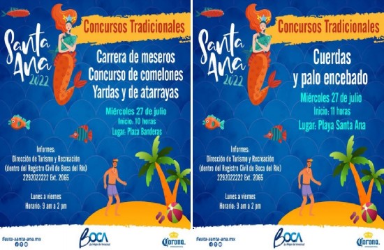 💁🏻♂️ Carrera de meseros 👨🏻🍳 Concurso de comelones 🐟 Yardas y de atarrayas 🪵 Cuerdas y palo encebado Para más información dirígete a la Dirección de Turismo y Recreación o llama 📞 al 2292022222 Ext. 2065. #BocadelRío #LoMejordeVeracruz |