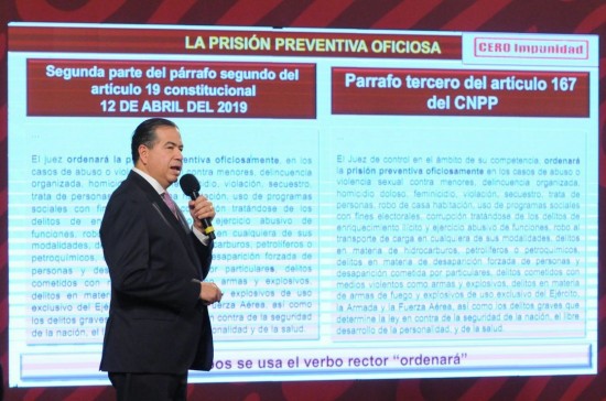 Por otro lado, informó sobre el operativo desplegado por la secretaria de Marina este miércoles en el periférico de la Ciudad de México, en el cual se logró rescatar a la señora Aiylin N que había sido secuestrada. Explicó que esta operación se realizó a partir de información de inteligencia e intervención de las comunicaciones de los involucrados por lo que se logró liberarla en la alcaldía Tlalpan. Al dar a conocer el informe Cero Impunidad, Mejía Berdeja se refirió a la prision preventiva oficiosa, subrayando que aun cuando se preservara el artículo constitucional si se invalida el artículo 167 del CNPP sería "Declarar en los hechos invalidar el artículo 19 constitucional porque tiene toda la Fuerza de la constitución no sólo en el texto que la conforma Artículo transitorio del decreto". Es decir con eso se Pretenderia alterar la a constitución invalidando una ley que se desprende de la constitución, un fraude a la constitución por la vía de la interpretación.. Por ello, dijo. Es necesario que Se mantenga no sólo el artículo 19 , sino el art inculto 167 del CNPP. Por otro lado,,dijo que en el caso del feminicidio de Debhani Escobar, se realizaron cateos en el Motel Castilla, en Monterrey, asegurándose celulares y equipos de almacenamiento de datos para fortalecer las investigaciones que permitan aprehender a los autores del homicidio. En paralelo, dijo que se avanza en la gestión para que la Fiscalía General de la República atraiga el caso dado que una de las vertientes de las indagatorias tiene que ver con la obstrucción de la justicia que se registró durante los primeros días posteriores al asesinato. |