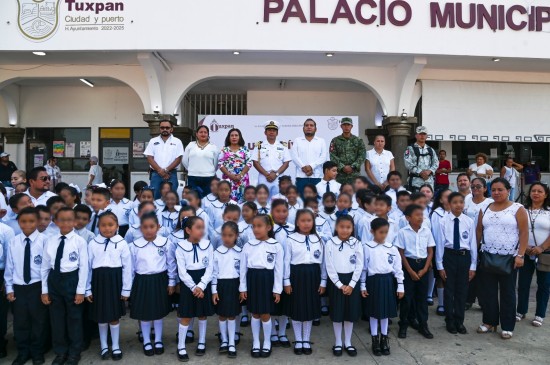 En el presídium estuvieron presentes el Prof. Jorge Arturo García Robles, director de Educación, en representación del alcalde José Manuel Pozos Castro; el Capitán de Navío Nahum Miguel José, en representación de la Fuerza Naval del Golfo; el subteniente de Infantería Joel Valdez Ramos, en representación de la 19ª Zona Militar; el Agente Mayor Pedro Gordillo Vázquez, de la 171 Compañía de la Guardia Nacional. La síndica única Mtra. Beatriz Piña Vergara; la Lic. Ericka Lucila Molina Soto, en representación de la Delegación Regional de la SEV en Tuxpan; y la Mtra. Trinidad Ordoñez Reyes, directora de la Escuela Primaria “Miguel Hidalgo y Costilla”; el Mtro. Fabián Argüelles, en representación de la regiduría séptima comisionada en Educación. Los estudiantes presentaron una reseña sobre la vida de Ignacio Aldama y recitaron la poesía coral titulada “Al Estado de Veracruz”, además expusieron las efemérides de esta semana. Al acto cívico también asistieron personal docente y padres de familia de la escuela primaria “Miguel Hidalgo y Costilla”; directores y coordinadores de área del Ayuntamiento de Tuxpan; la banda de guerra y la escota del 39° Batallón de Infantería; elementos de la Secretaría de Marina, Guardia Nacional, Policía Municipal, Protección Civil y Bomberos. |