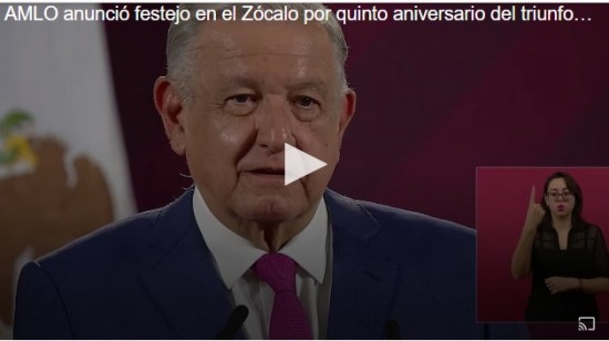 | López Obrador anuncia “fiesta” en el Zócalo por quinto aniversario del triunfo de la 4T. | ||||||