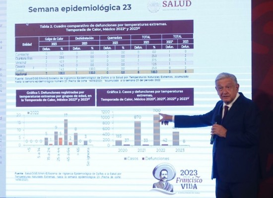 El presidente Andrés Manuel López Obrador confirmó que en lo que va del año se han registrado ocho muertes relacionadas con la ola de calor en el país, uno de ellos durante junio. En la mañanera de este miércoles, luego que en días pasados había negado fallecimientos a causa de la situación climática, el mandatario federal presentó cifras de la Secretaría de Salud federal en la que se develan que hasta ahora han sido ocho las personas que han perdido la vida a causa de las extremas temperaturas. Aunque, acotó, se trata de un número menor a lo que se ha presentado en años pasados, pues el año pasado el registro cerró con 42 muertes en México por las altas temperaturas; en 2021 fueron 33 y en 2020 se registraron 37, de acuerdo con los datos presentaos por el jefe del Ejecutivo federal. Insistió que en este año —donde comienza el periodo preelectoral— ay “amarillismo” de algunos medios para hacer énfasis en las muertes vinculadas a la ola del calor, sin contextualizar lo ocurrido en años pasados. “Sí hay una tendencia amarillista, alarmista, con propósitos politiqueros”. El mandatario federal también rechazó que existan problema de apagones generalizados en el país por la situación climática y relacionó también con el “alarmismo” informativo el que se destaque esta situación. |