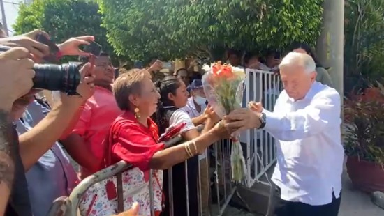 | Emocionada, María Cecilia saluda a López Obrador en Oaxaca. | ||||||