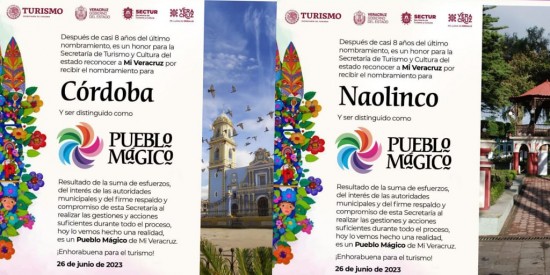XALAPA.- Luego de casi ocho años de la última distinción obtenida para Veracruz, hoy nuevamente dos municipios fueron elegidos como Pueblos Mágicos. La Secretaría de Turismo Federal entregó nuevos nombramientos de Pueblos Mágicos a distintos municipios del país; en el caso de Veracruz, los únicos dos que cumplieron con los requisitos fueron Naolinco y Córdoba. En un evento efectuado en la Ciudad de México se destacó el compromiso de las autoridades estatales y municipales para ser parte del programa que los ubica dentro de un sector turístico importante para conocer lugares que cuentan con tradición, cultura y belleza arquitectónica. Al respecto, el secretario de Turismo y Cultura, Iván Martínez Olvera, dijo que el nombramiento es resultado del trabajo coordinado que posiciona al estado como un referente turístico a nivel nacional e internacional. "De esta forma continuaremos concretando logros en materia de desarrollo turístico que consolidan a Veracruz como potencia turística de primer nivel", agregó. Respecto a Córdoba, destacó el trabajo coordinado del Ayuntamiento en la suma de esfuerzos y de intereses, con el compromiso de hacer gestiones y acciones necesarias para poder ubicar a este lugar como un Pueblo Mágico. Con relación a Naolinco, tuvo que esperar ocho años desde su último intento por ser parte del programa, pero que por diversas situaciones no se había logrado, hasta que recibieron el acompañamiento de Sectur Veracruz. Se informó que en los próximos días o semanas cada uno de los nuevos Pueblos Mágicos podrá erigir sus reconocimientos en sus plazas públicas, acceder a más recursos federales para la promoción y ser mencionados en revistas especializadas para atraer visitantes.