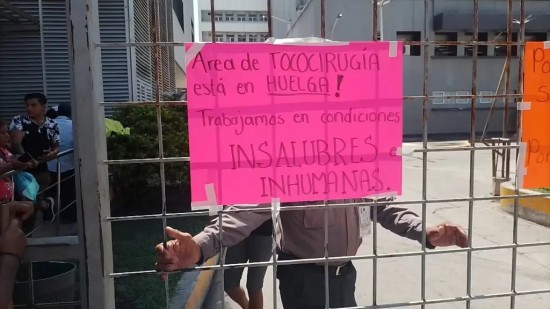 XALAPA.- Contrario a la promesa del gobierno de la Cuarta Transformación de hacer un sistema de salud de primer mundo, como en Dinamarca, este martes aparecieron en las puertas de ingreso del Hospital Regional de Alta Especialidad de Veracruz, varias cartulinas donde los propios trabajadores denuncian que laboran en “condiciones insalubres e inhumanas” en el área de Tococirugía, es decir, donde se atiende a las mujeres en situación de parto. Se trata de al menos tres cartulinas que pegaron en las puertas que dicen: “área de Tococirugía está en huelga. Trabajamos en condiciones insalubres e inhumanas”. También, “sin clima, sin agua, sin puertas, sin las condiciones necesarias para el cuidado de las pacientes”. Pese a ello, hasta ahora no ha salido o emitido un trabajador de esa área algún comentario al respecto de la situación que prevalece en un sitio donde es vital que haya limpieza y un clima adecuado para tratar a las mujeres embarazadas, y más cuando ya se trata de un quirófano. Hace unos días, familiares de un derechohabiente operado este martes denunciaron que tienen ya 15 días en el lugar, y no han tenido al interior aire acondicionado, por lo que tuvieron que llevarle un ventilador al paciente para aguantar un poco las altas temperaturas. “Le tuvimos que comprar un ventilador, todos los pacientes han comprado, nada más se ve la mancha del ventilador (en el segundo piso), tenemos con hoy 14 días, desde que llegamos (no han tenido aire acondicionado)”, lamentaron. Por lo pronto, habrá que ver si los empleados o autoridades del Hospital ubicado en la avenida 20 de Noviembre manifiestan la problemática mediante alguna otra forma de protesta, y no solo a través de los carteles colocados en las inmediaciones del inmueble. Así las cosas.