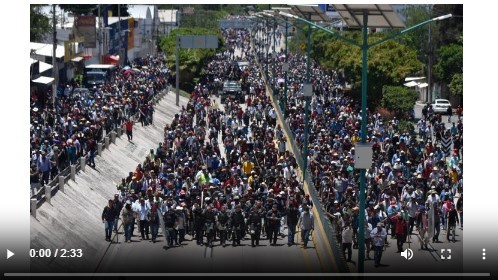 | A las 9 de la mañana arribaron los contingentes; al poco tiempo se dio un primer enfrentamiento con fuerzas de la policía estatal y de la Guardia Nacional (GN), frente a las instalaciones de esta última corporación. | ||||||