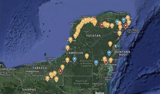 El trazado contempla 19 estaciones y 14 paraderos que se distribuyen en siete tramos en un plan que no siempre fue así. Durante los tres años de construcción han habido cambios debido a amparos interpuestos, ahorros económicos y complejidades geográficas. El trazado contempla 19 estaciones y 14 paraderos que se distribuyen en siete tramos en un plan que no siempre fue así. Durante los tres años de construcción han habido cambios debido a amparos interpuestos, ahorros económicos y complejidades geográficas. Tabasco Emiliano Zapata Tenosique Balancán Campeche Candelaria Escárcega Champotón Campeche Calkiní Calakmul Tenabo Hecelchakán Dzitbalché Yucatán Bokobá Cacalchén Chemax Chocholá Halachó Izamal Kanasín Kopomá Maxcanú Mérida Tixkokob Tixpéhual Tinúm Kantunil Umán Sudzal Yaxcabá Uayma Valladolid Quintana Roo Lázaro Cárdenas Benito Juárez Puerto Morelos Solidaridad Tulum Othón P. Blanco Bacalar Felipe Carrillo Puerto Estaciones del Tren Maya Las estaciones serán las edificaciones en donde arribarán la mayoría de turistas. Contarán, además de con los andenes, con espacios comerciales y de consumo. También estarán conectados a hoteles y zonas turísticas a lo largo de la ruta. Los paraderos, en cambio, serán sitios más pequeños que servirán para circuitos específicos en rutas estándar. Tramo 1- Palenque, Chiapas-Escárcega, Campeche Chiapas Estación Palenque Tabasco Estación Boca del Cerro, Tenosique Estación El Triunfo, Balancán Paradero Tenosique Campeche Estación Escárcega Paradero Candelaria Tramo 2- Escárcega-Calkiní, Campeche Campeche Estación Edzná Estación San Francisco de Campeche Paradero Carrillo Puerto Paradero Tenabo Paradero Hecelchakán TRAMO 2 DEL TREN MAYA Tramo 3- Calkiní, Campeche-Izamal, Yucatán Campeche Paradero Calkiní Yucatán Estación Mérida-Teya Estación Izamal Paradero Maxcanú Paradero Umán Paradero Tixkokob ESTACIONES Y PARADEROS DEL TRAMO 3 Tramo 4- Izamal, Yucatán-Cancún, Quintana Roo Yucatán Estación Chichén Itzá Estación Valladolid Quintana Roo Estación Cancún Aeropuerto. Paradero Nuevo Xcan Paradero Leona Vicario ESTACIONES Y PARADEROS DEL TRAMO 4 Tramo 5 Norte Cancún Aeropuerto-Puerto Morelos, Quintana Roo Quintana Roo Estación Puerto Morelos Tramo 5 Sur- Puerto Morelos-Tulum Aeropuerto, Quintana Roo Quintana Roo Estación Playa del Carmen Estación Tulum ESTACIONES Y PARADEROS DEL TRAMO 5 Tramo 6- Tulum-Chetumal, Quintana Roo Quintana Roo Estación Tulum Aeropuerto Estación Felipe Carrillo Puerto Estación Bacalar Estación Chetumal Aeropuerto Paradero Limones ESTACIONES Y PARADEROS DEL TRAMO 6 Tramo 7- Chetumal, Quintana Roo-Escárcega, Campeche Quintana Roo Paradero Nicolás Bravo Campeche Estación Xpujil Paradero Calakmul Paradero Centenario ESTACIONES Y PARADEROS DEL TRAMO 7 |
