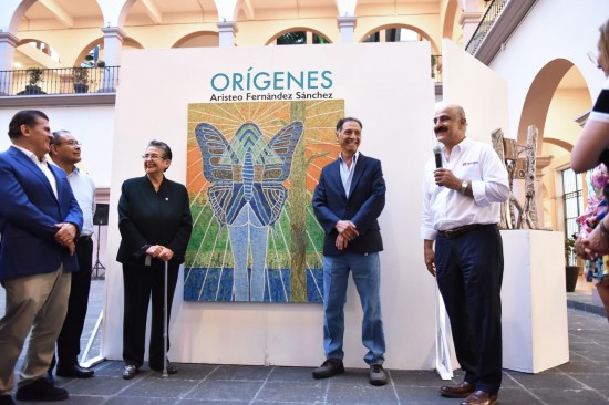 XALAPA.- El presidente municipal Ricardo Ahued Bardahuil y la senadora Gloria Sánchez Hernández inauguraron este viernes la exposición de plástica “Orígenes”, del maestro Aristeo Fernández, misma que permanecerá en el patio central de Palacio Municipal hasta el 5 de agosto.