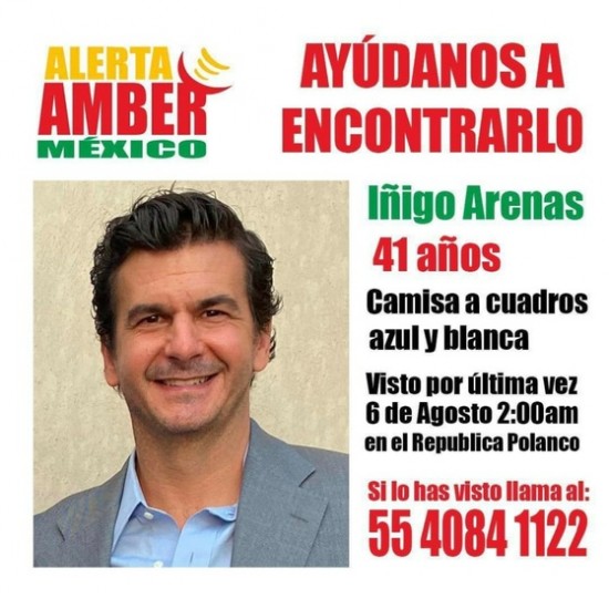 CDMX.- El presidente Andrés Manuel López Obrador confirmó que el empresario Iñigo Arenas Sainz fue encontrado muerto, tras ser visto por última vez al salir de un bar de Polanco el pasado fin de semana.