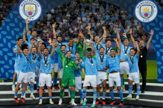 Después del empate 1-1 en el tiempo reglamentario y nueve cobros bien ejecutados en la tanda, Nemanja Gudelj estrelló su remate contra el travesaño para darle el City la victoria en el estadio Georgios Karaiskakis. Fue el 15to trofeo que atrapa el City en la era Guardiola, que comenzó en 2016. La consagración sirvió para desquitarse de la derrota por penales ante Arsenal en el Community Shield hace 10 días. “El técnico nos dejó muy claro antes del partido cuánto ansiaba este trofeo”, dijo el mediocampista Jack Grealish acerca del partido entre el ganador de la Liga de Campeones (City) y el monarca de la Liga Europa (Sevilla). “Uno quiere ganar todo de cualquier forma, pero esto nos representaba una mayor urgencia. Este club jamás había ganado esta copa. La sensación es maravillosa”. Un cabezazo del delantero marroquí Youssef En-Nesyri adelantó al Sevilla a los 25 minutos de un partido disputado con un agobiante calor y humedad en Atenas. En-Nesyri dispuso de otras tres excelentes ocasiones para ampliar la diferencia y el City niveló el duelo a los 63 mediante un cabezazo del extremo Cole Palmer. El conjunto inglés dominó el segundo tiempo, y el delantero estelar Erling Haaland permaneció en la cancha durante todo el partido pese a que el City tiene previsto para el sábado un cotejo importante de la Liga Premier ante Newcastle. Guardiola se convirtió en el segundo técnico, después de Carlo Ancelotti, en conquistar la Supercopa cuatro veces. Es el primero en obtenerla con tres equipos diferentes —Bayern Múnich en 2013 y Barcelona en 2009 y 2011. Kyle Walker levantó la copa en medio de una lluvia de confeti y de cánticos de “campeones” por parte de sus compañeros del City en un escenario que se emplazó a la mitad del campo. La imagen se está volviendo costumbre. La temporada anterior, los Citizens obtuvieron por primera vez un triplete de Liga Premier, Copa de la FA y Liga de Campeones. Esta campaña pinta más complicada para Guardiola y su equipo. El partido evidenció quizá la necesidad de que el equipo muestre más creatividad y peligro de gol tras la salida de Ilkay Gundogan y Riyad Mahrez durante el receso previo a la campaña. Además, una lesión dejaría fuera por cuatro meses a Kevin de Bruyne. |