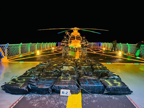El primer aseguramiento ocurrió a 290 millas náuticas, aproximadamente 537 kilómetros, de la costa del Pacífico, donde un avión de la Armada ubicó una embarcación menor tripulada por dos mexicanos y cuatro extranjeros, que transportaban mil 500 toneladas de la droga.