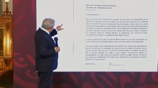 | AMLO exhibe carta con la que pidió a la Sedena “proceder” contra generales ligados al caso Ayotzinapa. | ||||||