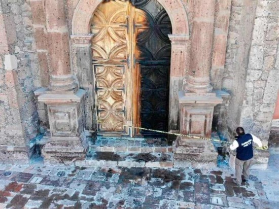 | Prenden fuego a puerta de iglesia histórica en Querétaro. | ||||||