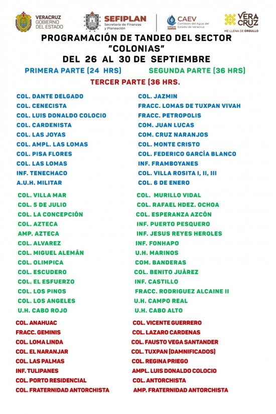 | (CAEV) Tuxpan informa que a partir del día de hoy el servicio está para al Sector Colonias. | ||||||