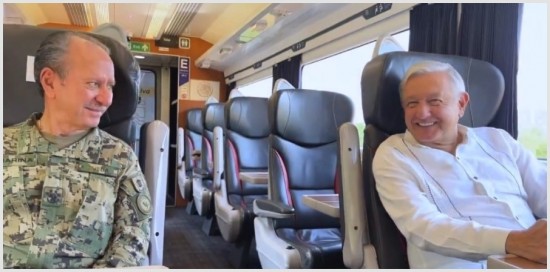 | A través de un video, desde el que se ve el rodar del Tren, acompañado del secretario de Marina, el almirante Rafael Ojeda Durán, el Ejecutivo federal expresó sonriente que la vía ya está mejor y el transporte es muy cómodo. | ||||||