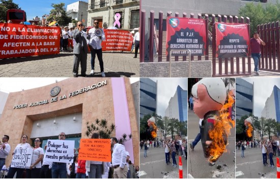 XALAPA.- Una vez más los trabajadores del Poder Judicial de la Federación (PJF) realizaron un paro laboral este lunes 16 de octubre en los 11 órganos judiciales en la ciudad de Xalapa, capital del estado de Veracruz. Se trata de la tercera ocasión que se manifiestan de manera pacífica en contra de los recortes presupuestales a 13 de los 14 fideicomisos que afectarán directamente a las prestaciones y salarios de los trabajadores. En Xalapa, hay en promedio mil 250 empleados distribuidos en 11 órganos judiciales en sedes con domicilio en la avenida Adolfo Ruiz Cortines, Manuel Ávila Camacho y Mártires 28 de agosto. Para la protesta, que duró una hora, los trabajadores salieron de sus oficinas para señalar que desde la federación se preparan recortes salariales. Por lo anterior, pidieron un alto a las afectaciones laborales debido a que en la Cámara de Diputados en San Lázaro, la bancada del Movimiento de Regeneración Nacional (Morena) afina detalles para recortar 15 mil millones de pesos al PJF en el Presupuesto de Egresos 2024. La primera protesta en la capital veracruzana se llevó a cabo el jueves 12 de octubre, cuando mostraron sus pancartas afuera de las instalaciones del PJF en el bulevar Rafael Guízar y Valencia, popularmente conocido como Arco Sur. En sus consignas se leen: “El PJF es para todos”, “el PJF sí sirve al pueblo”, “no son privilegios, son nuestros derechos”. Los mensajes fueron puestos en las fachadas de los inmuebles, mientras que en el PJF de Arco Sur, los trabajadores mostraron banderas en color rojo con negro en las que se leían “las leyes te dan derechos, el Poder Judicial de la Federación vigila que te los respeten”. También explicaron que algunos de los fideicomisos son fondos de apoyo a las prestaciones laborales, gastos de seguro médico, pues se trata de prestaciones que se ganaron hace muchos años por medio del sindicato. Los trabajadores anunciaron que continuarán con estas protestas, para que sus reclamos sean escuchados ante la Federación y la Cámara de Diputados de San Lázaro, pues existe el riesgo de afectaciones salariales. Será el 15 de noviembre cuando se presentará la segunda parte de la propuesta en la Cámara de Diputados para el recorte de fideicomisos al Poder Judicial de la Federación, a la Suprema Corte de Justicia de la Nación (SCJN), así como al Consejo de la Judicatura Federal (CJF). Pese a ello, la diputada federal de Morena, Claudia Tello, aspirante a coordinar los Comités de Defensa de la Cuarta Transformación en Veracruz, calificó como fuera de lugar el paro de trabajadores del Poder Judicial de la Federación, ya que asegura que la eliminación de los fideicomisos no les afectará. La legisladora morenista repitió el discurso de la bancada de su partido y del propio Presidente Andrés López, en el sentido de que la desaparición de los fideicomisos se debe a los altos salarios de 300 mil mensuales, aguinaldos de los ministros, así como las prestaciones como aguinaldos. La iniciativa para eliminar los fidecomisos se analizará este martes en el pleno de la Cámara de Diputados.