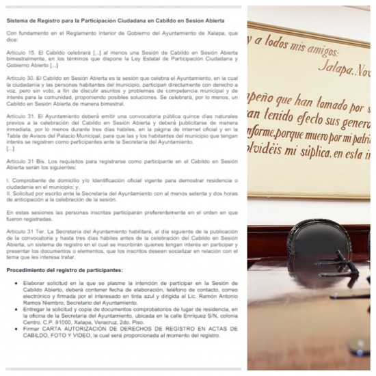 Para escuchar, recibir y analizar propuestas ciudadanas orientadas a la mejora del entorno urbano de los planteles educativos de educación superior, e integrarlas a las acciones de gobierno de esta Administración, el próximo martes 31 de octubre a las 12:00 horas, se desarrollará el quinto Cabildo en Sesión Abierta del año. De acuerdo con la Ley Orgánica del Municipio Libre, estas sesiones se desarrollarán de manera bimestral para abordar distintos temas de relevancia para la vida pública de las y los xalapeños. Además, con ello se cumple con la política de puertas abiertas de esta Administración, que busca construir una mejor ciudad a través de la participación ciudadana, pues todos los participantes inscritos tendrán derecho a exponer sus propuestas de forma libre ante las y los ediles. En este sentido, se convoca a la ciudadanía en general a participar en la próxima Sesión registrándose en las oficinas de la Secretaría del Ayuntamiento, ubicadas en Palacio Municipal, previa consulta de requisitos en el sitio: https://cloud.xalapa.gob.mx/index.php/s/mqS9T3BtG7Jq3Qa. Para más información, las personas interesadas se pueden comunicar a los números telefónicos 228 290 1000 extensión 1141, y 228 290 1014. |