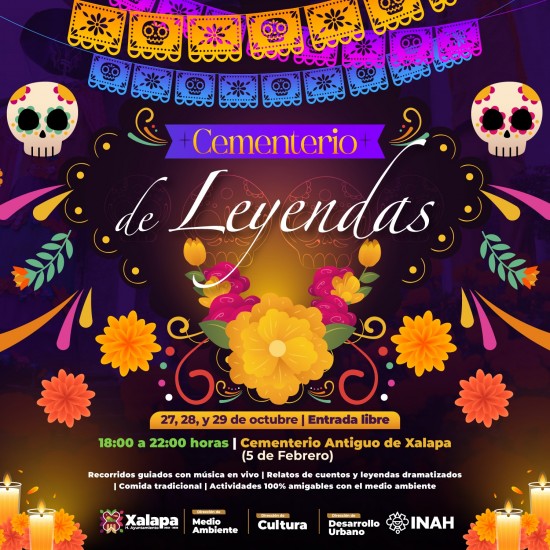 En estas fechas, de 19:00 a 22:00 horas, esta joya arquitectónica reconocida como monumento histórico, servirá de escenario para que la compañía "Mettea Metamorfosis Teatral" presente un recorrido histórico-cultural interactuando con los personajes históricos, cuyos restos descansan en este cementerio. La dramatización estará acompañada con música en vivo como un espectáculo cultural imperdible. Además, en la explanada del Cementerio habrá diversas actividades para toda la familia, donde Iván Zepeda Valdés, el cuentero cordobés, estará relatando cuentos, mitos y leyendas de Día de Muertos; también habrá comida típica de la temporada y diversos juegos tradicionales. La entrada y todas las actividades serán gratuitas. Se invita a la población a llevar su vaso, plato, cuchara y/o recipiente para consumo de los alimentos. |