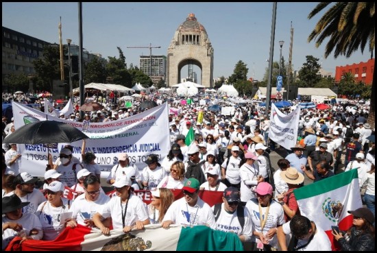 | Calificó la marcha como una movilización del “bloque conservador”, pues estuvieron también presentes los dirigentes “del PRIAN”. También señaló que la manifestación estuvo “muy menguada eh, porque una vez hasta llenaron el Zócalo, nada más una vez, pero ya no tienen mucha base social, mucho apoyo ciudadano, porque la gente se da cuenta, no se puede defender lo indefendible”. | ||||||