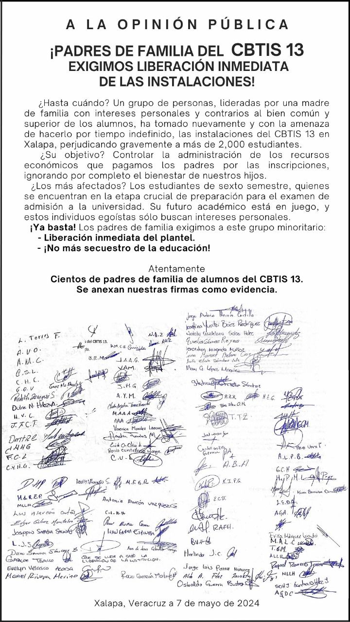 | ¡PADRES DE FAMILIA DEL CBTIS 13 EXIGIMOS LIBERACIÓN INMEDIATA DE LAS INSTALACIONES! | ||||||