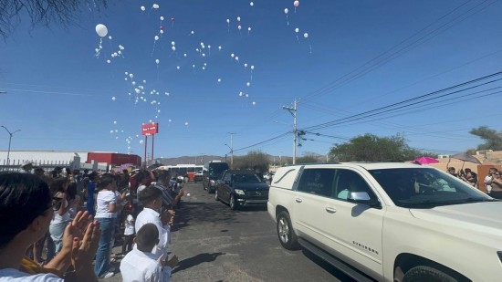 | El cortejo fúnebre partió de la casa de la abuela paterna de las menores, en la colonia Insurgentes. Desde temprano, vecinos y familiares colocaron flores y veladoras en la banqueta. A la salida, decenas de personas se sumaron para caminar junto a las carrozas, que avanzaron lentamente bajo un sol abrasador de Hermosillo, acompañadas por rezos y aplausos. | ||||||