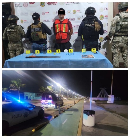 Detienen a seis personas durante operativo en el malecón de Coatzacoalcos; Suman 27 detenidos en operativos en Coatzacoalcos, Sayula y Las Choapas, decomisan drogas, armas y huachicol.