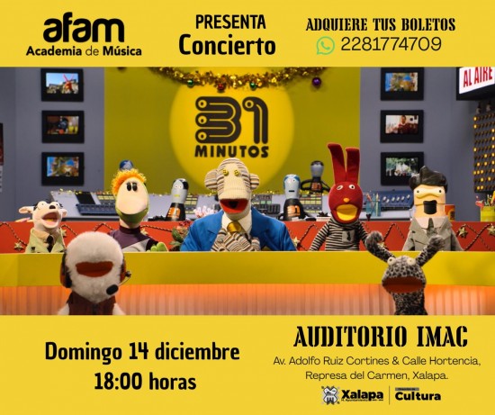Este martes, a las 17:00 horas, en el Museo de la Música Veracruzana se presentará un Recital de Guitarra, mientras que en el Centro Recreativo Xalapeño (CRX), se ofrecerá el concierto “Navidad a 2 voces”, con Gema y Ricardo. A las 18:00 horas, en el Museo de la Música Veracruzana, el Centro de Iniciación Musical Infantil de Xalapa presentará su recital de violín y violonchelo. A las 19:00 horas, en el Teatro J. J. Herrera, se tendrá el recital “Erich Fromm y el Amor”. El miércoles, a partir de las 16:00 horas, se celebrará el Día Nacional del Payaso en el Parque Benito Juárez con la participación de artistas y sorpresas. A las 17:00 horas, en el Teatro J. J. Herrera, Suzuki Stars ofrecerá su Concierto de Fin de Año; de forma simultánea, en el Museo Casa de Xalapa (Muxa), se impartirá la charla “La vida y mi felicidad”. En el Museo de la Música Veracruzana, a las 18:00 horas, habrá un Recital de Guitarra con alumnos del maestro Rodrigo Carreón. El jueves, a las 17:00 horas, Abraham y su Trompeta ofrecerán su concierto “Navidad en el aire”, en el CRX; de manera simultánea, en el Barrio Mágico de Xallitic, Gema y Ricardo pondrán el ambiente con su música. A las 19:00 horas, en el CRX, se proyectará la película “Anina”, dentro del ciclo de cine Latinoamérica Animada; en Palacio Municipal se presentará el Concierto Navideño de la Orquesta Municipal de Xalapa, y en el Teatro J. J. Herrera, la academia JazzCat ofrecerá su Concierto de Fin de Año. El viernes, desde las 7:00 horas, Gema y Ricardo interpretarán “Las Mañanitas” a la Virgen de Guadalupe, en el Barrio Mágico de Xallitic. A partir de las 10:00 horas, en la Plazuela del Carbón estará el Mercado Ornamental Navideño. A las 12:00 horas, continuará el Foro Navideño con talleres, show de payasitos y la presentación de Conchita Garfias, Trío Voces de la Noche, Ramsés Ojeda, Nueva Odisea y Santiago Ruiz. A las 17:00 horas, en el Museo de la Música Veracruzana, los alumnos de Luisa González Pardo presentarán su Concierto de Fin de Año. A las 18:00 horas, la Secretaría de Educación de Veracruz ofrecerá un Concierto Navideño en el Teatro J. J. Herrera; a las 19:00 horas, en el Museo de la Música Veracruzana, se realizará el fandango “Son ellas, mujeres soñando”. A las 19:30 horas, en Xallitic, se presentará nuevamente la danza prehispánica del grupo Ce Acatl. El sábado, a partir de las 12:00 horas, en el parque Juárez continuará el Foro Navideño con talleres, show de payasitos y la participación de JazzCat, Abraham y su Trompeta, Neto Rodríguez, Anuar Py, JClassic y Olmos Coatl. En Xallitic, a las 17:00 horas, se realizará la Posada Navideña con el Ensamble Infantil XalArpa, el Ensamble Vocal Real de Xalapa y Axel Ramírez. A las 18:00 horas, en el Teatro J. J. Herrera, se rendirá homenaje a Doña Elena Ramírez Aguirre, con “La Polaca”. A las 18:30 horas, en el auditorio de la IMAC, la Tuna Universitaria de Xalapa celebrará su décimo aniversario. A las 20:00 horas, en el CRX, se presentará el musical “Migajerxs”, del Estudio Arcadia. El domingo, desde las 10:00 horas, habrá Terapias Complementarias de Holística Xalapa, en el CRX. A las 12:00 horas, en el Parque Juárez, será el último día del Foro Navideño, que incluirá talleres, show de payasitos y las presentaciones del Coro “Voces de los Tiempos”, Rondalla Romántica Femenil, Danzón pa’l Corazón y Los Tropicosos. A esta misma hora, en Casa Doña Falla, se llevará a cabo el Recital de Fin de Año de Paraxute Music and Piano School S.C.; y en el auditorio de la IMAC, se proyectará “La Princesa Mononoke”, por el Centro de Formación Artística Jardín Escénico. Finalmente, a las 17:00 horas, en el Museo de la Música Veracruzana, se realizará el Ciclo de Coros del Estudio Coral Ayotli; a las 18:00 horas, en el auditorio de la IMAC, la academia de música AFAM presentará su concierto temático de “31 Minutos”. A esta misma hora, el Teatro J. J. Herrera recibirá la puesta en escena “Noche rústica de Walpurgis”. |
