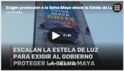 Escalan la Estela de Luz y con gran manta Greenpeace exige al gobierno proteger la Selva Maya |