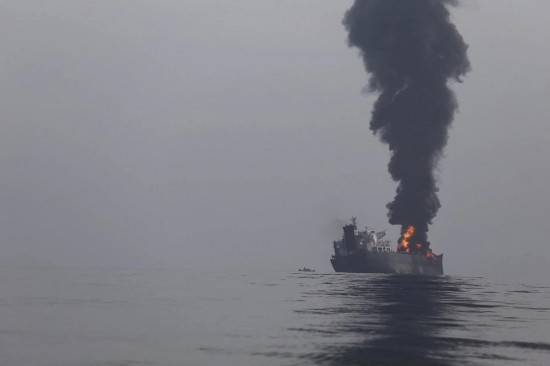 Se incendia buque en puerto de Coatzacoalcos, Veracruz.
