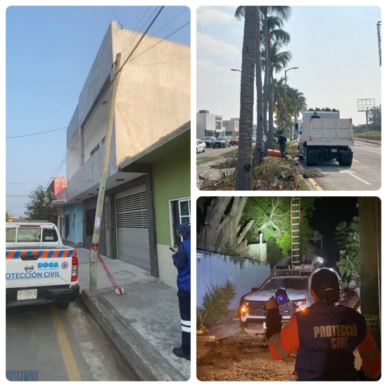 Gracias a las medidas preventivas y al operativo implementado por la Fuerza de Tarea, se reportó saldo blanco durante este fin de semana debido a los efectos del Frente Frío 27, informó la Alcaldesa de Boca del Río, Maryjose Gamboa Torales. De acuerdo con las autoridades estatales en materia de Protección Civil, las rachas máximas de viento del norte alcanzaron los más de 109 kilómetros por hora. Las áreas operativas del Gobierno Municipal se mantuvieron trabajando de manera permanente para atender los reportes derivados del paso del sistema frontal, con el objetivo de mantener una ciudad limpia, ordenada y segura. Las acciones de atención y emergencia que se registraron fueron las siguientes: Hubo 3 caída de árboles, 2 semáforos dañados y cableado afectado por daño en dos postes. Cuatro viviendas resultaron afectadas, una por la caída de un árbol y otra por afectaciones en un tragaluz. Se dañó un parabús. Se realizó la poda y el retiro de ramas de 3 palmeras que estuvieron a punto de caer. Cierre vial total en el bulevar Manuel Ávila Camacho, en el tramo que comprende de la Av. Juan Pablo Segundo a la glorieta del Hotel Lois. No se reportan personas lesionadas afortunadamente. Asimismo, la zona de playas permaneció con bandera roja, por lo que no se permitió el ingreso al mar para su disfrute. La Presidenta Municipal reiteró que la Fuerza de Tarea se mantuvo atenta a los reportes ciudadanos, por lo que las direcciones de Protección Civil, Policía Municipal, Tránsito Municipal, Gobernación, Alumbrado Público, Limpia Pública, Mantenimiento Urbano y Comercio, además de Bomberos Conurbados, estuvieron en alerta permanente. |