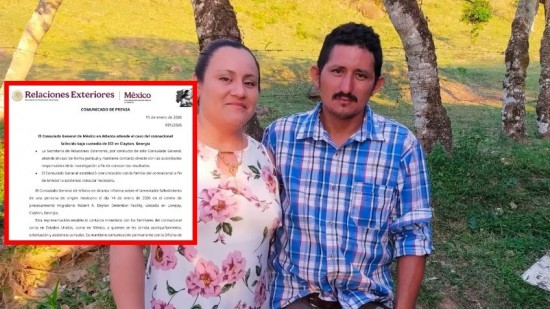 Fue la Secretaría de Relaciones Exteriores (SRE) quien, a través del Consulado General de México en Atlanta, pidió esclarecer la situación luego de conocer lo que sucedió el pasado 14 de enero en el centro de procesamiento migratorio Robert A. Deyton Detention Facility. “Esta representación estableció contacto inmediato con los familiares del connacional, tanto en Estados Unidos como en México, a quienes se les brinda acompañamiento, orientación y asistencia consular”, dijo la SRE por medio de un comunicado.