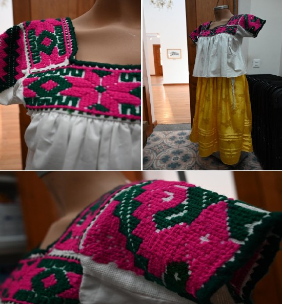 Las piezas son artesanías que preservan técnicas actualmente poco comunes, como el bordado en punto de cruz, de lomillo y el tejido en telar de cintura.