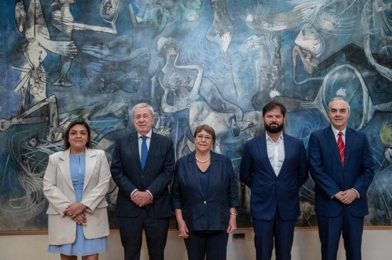 “Tengo el honor y el orgullo en este palacio de La Moneda de anunciar a los y las ciudadanas de nuestra patria y el mundo, que hoy oficializaremos en la ciudad de Nueva York la candidatura de la ex presidenta Michelle Bachelet Jeria a la secretaría general de Naciones Unidas”, informó el mandatario Gabriel Boric, en compañía de los embajadores de Brasil, Paulo Pacheco, y de México, Laura Moreno.